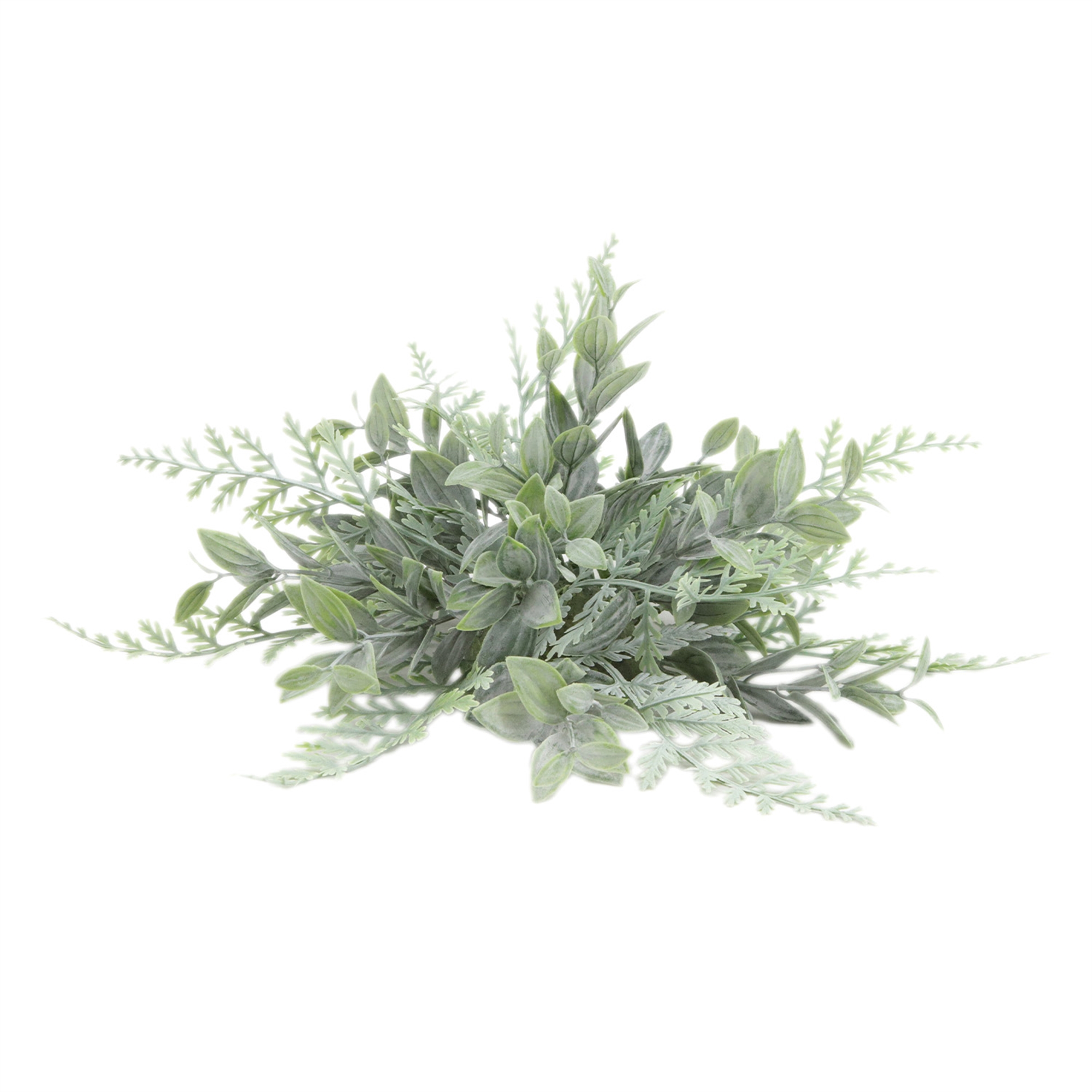 Fern Orb Decorative Greenery Sphere. A beautifully blended greenery orb featuring soft sage and eucalyptus-style leaves mixed with delicate fern textures for a natural, airy look. This faux greenery piece adds dimension and softness to bowls, trays, and centerpieces, making it perfect for everyday décor or seasonal styling. Its varied leaf shapes and muted green tones create a realistic botanical accent that works well in farmhouse, cottage, or spring displays. MFG ID#: FAQ61784.
